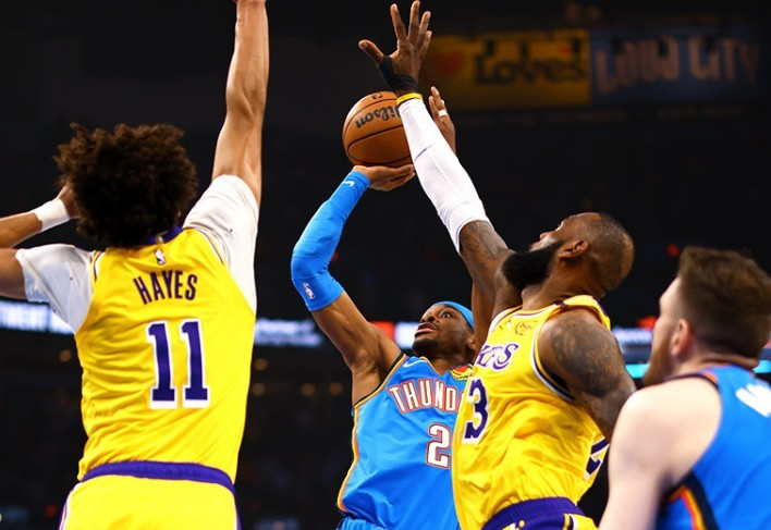 下半场,雷霆队继续保持着强势的进攻态势。 亚历山大虽然不再像上半场那样得分如砍瓜切菜,但他的组织和串联依然非常出色。他为队友创造了大量的得分机会,使得湖人队防不胜防。